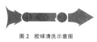 該膠球清洗裝置系統(tǒng)將裝入膠球室內(nèi)比重與水接近的海綿膠球送入凝汽器循環(huán)水入口,直徑比凝汽器銅管略粗的膠球在循環(huán)水的帶動(dòng)力下,擠壓變形后進(jìn)入凝汽器銅管擦洗銅管表面,當(dāng)膠球流出銅管時(shí)在自身彈力的作用下,突然恢復(fù)原狀,如圖2所示。