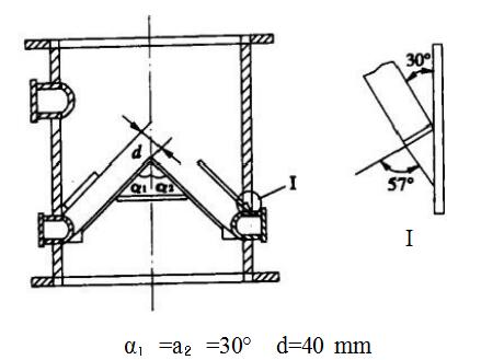 由于循環(huán)水進入凝汽器前水室,在水室四角產(chǎn)生死角或回流區(qū),造成部分膠球滯留,不參與循環(huán)。針對此情況,在凝汽器水室間隔及四角用5mm厚鋼板堵焊(見圖5,導(dǎo)流板焊接時不準壓蓋冷卻水管口)。