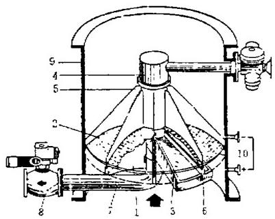 1——扇形隔艙;2——濾網(wǎng)表面;3——旋轉(zhuǎn)水室;4——電動機和傳動裝置;5——骨架的軸向拉金;6——彈性密封17——排污管;8——自動排污悶;