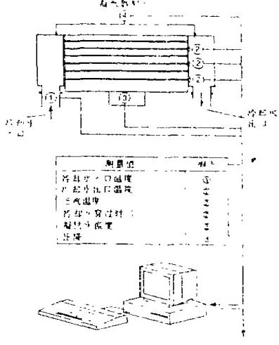 根據(jù)測量的目的.在一個或多個管束中選擇具有代表性的單根冷卻管上安裝熱探頭,見圖11。運行中按規(guī)定的時間和間隔測量。測得數(shù)據(jù)儲存在計算機內(nèi)進行運算和評價,并將信號和信息傳送到有關(guān)設(shè)備進行運作: