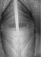 3)收球網(wǎng)關(guān)不嚴(yán)或破損。運(yùn)行期間可通過測(cè)量搖臂長(zhǎng)度,與其他運(yùn)行正常的收球網(wǎng)搖臂長(zhǎng)度進(jìn)行對(duì)比,判斷收球網(wǎng)是否關(guān)閉到位。若參考其它收球網(wǎng)搖臂長(zhǎng)度調(diào)整后,投運(yùn)后仍存在丟球問題,則需隔離排空收球網(wǎng)所在管道,進(jìn)入管道內(nèi)部檢查收球網(wǎng)關(guān)閉情況,判斷有無破損,有無異物夾雜在收球網(wǎng)之間,如圖7所示。若運(yùn)行期間無球進(jìn)入管道內(nèi)部,可投放門的試驗(yàn)?zāi)z球,收球網(wǎng)運(yùn)行狀態(tài)下,工作人員在排水口設(shè)置攔網(wǎng),觀察及檢查有無大量試驗(yàn)?zāi)z球流出。
