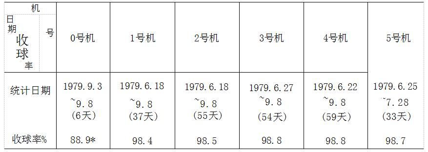 電力部電廠各臺(tái)機(jī)組設(shè)計(jì)了膠球清洗裝置,采用了不同的凝汽器系統(tǒng)和部件,除0號(hào)機(jī)有其它影響因素外收球率都較高而穩(wěn)定(見表1),經(jīng)濟(jì)效果顯著。