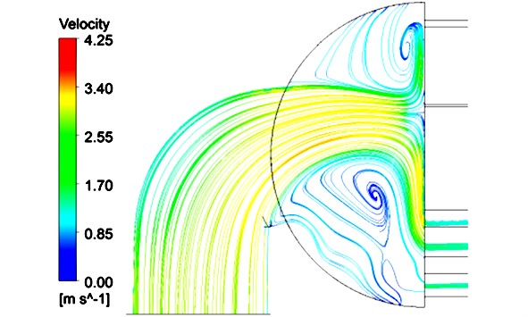 電站冷端設(shè)備對(duì)機(jī)組的高效經(jīng)濟(jì)運(yùn)行有重要影響。凝汽器長(zhǎng)期運(yùn)行后,其冷卻管內(nèi)壁會(huì)形成污垢,嚴(yán)重時(shí)會(huì)堵塞管道,致使汽水換熱效果變差,影響機(jī)組熱經(jīng)濟(jì)性。目前,電站凝汽器普遍采用冷凝器膠球清洗裝置配件海綿橡膠球來(lái)清潔冷卻管。但由于凝汽器入口水室結(jié)構(gòu)原因,在入口水室內(nèi)會(huì)形成渦流區(qū)域,海綿橡膠球?qū)⒃谠搮^(qū)域集聚打旋,這將導(dǎo)致膠球分布不均勻,管道清洗不徹底,嚴(yán)重時(shí)可能會(huì)影響凝汽器真空度,進(jìn)而影響整個(gè)機(jī)組的熱經(jīng)濟(jì)性。對(duì)該部分進(jìn)行優(yōu)化改造,對(duì)于提高機(jī)組的熱經(jīng)濟(jì)性有重要意義。