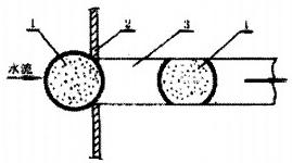 膠球清洗裝置是一種不需要停機(jī)對(duì)凝汽器銅管自動(dòng)清掃方法,它利用特制的海綿球,通過(guò)循環(huán)水在凝汽器銅管內(nèi)進(jìn)行自動(dòng)沖刷清洗。海綿球具有多孔,能壓縮等特性,當(dāng)比銅管直徑大(1~2)mm的膠球在水流帶動(dòng)下與銅管管壁發(fā)生磨擦?xí)r,就能擦去管壁上的附著物,而后水流又通過(guò)其孔隙把擦下的污物沖走,以達(dá)到清洗銅管的目的,膠球在銅管內(nèi)的運(yùn)動(dòng)情況如圖1所示: