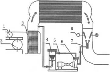 電廠膠球清洗裝置系統(tǒng)工作原理如圖1所示,先關(guān)閉收球網(wǎng),將比重與水相同的膠球加進(jìn)裝球室后,開啟膠球泵進(jìn)、出口電動碟閥,啟動膠球泵,開啟裝球室后電動門,打開裝球室切換閥,膠球裝置處于清洗位置;膠球在比循環(huán)水壓力略高的水流帶動下,進(jìn)入凝汽器水室進(jìn)口,隨即同循環(huán)水混合并由水室進(jìn)入銅管,膠球在進(jìn)水中分散均勻,凝汽器的各銅管進(jìn)球機(jī)率相同;膠球雖比銅管內(nèi)徑略大,由于它是多孔、柔軟的彈性體,可在較小的壓差作用下壓縮變形而進(jìn)入銅管,膠球在行進(jìn)過程中與銅管有整圈接觸,等于把銅管清冼一遍;當(dāng)膠球流出管口時,在自身彈性作用下恢復(fù)原狀,并隨水流向水管,繼而至收球網(wǎng),在網(wǎng)壁的阻攔及出水的沖帶下,膠球進(jìn)入網(wǎng)底;由于膠球泵進(jìn)水管口接在此處,故膠球在泵的進(jìn)口負(fù)壓作用下被吸入泵內(nèi),在泵內(nèi)獲得能量后,重新進(jìn)入裝球室重復(fù)以上運(yùn)動。圖1單循環(huán)制膠球清洗系統(tǒng)為了解決膠球裝置收球率低的問題,通過認(rèn)真分析膠球系統(tǒng)工作原理和設(shè)備結(jié)構(gòu),主要采取以下三個方面措施: